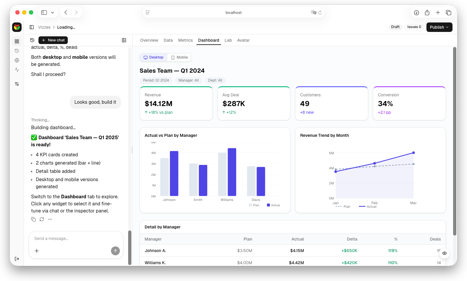 Interactive dashboards from a single sentence. Desktop + mobile.